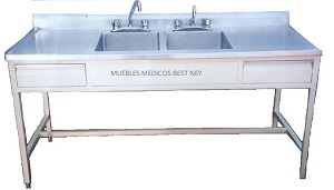 MESA ALTA 1.80 MT CON DOBLE FREGADERO CENTRAL Y CAJONES
